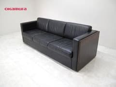 オカムラ 3人掛け応接ソファ 本革張地/ローズウッドフレーム 応接ソファ