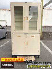 【中古】【一部地域送料無料】ドクターキャビネット ※鍵付き ガラス棚 アイボリー 収納棚 保管庫 F-NA-860-0129A