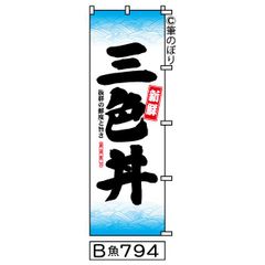 【お得な2枚セット-新品-送料無料】【キャンセル不可-12営業日で発送-ポスト投函】2枚組【三色丼】のぼり旗|白に水色波柄黒の目立つ手書き筆文字[794]