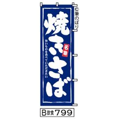【お得な2枚セット-新品-送料無料】【キャンセル不可-12営業日で発送-ポスト投函】2枚組【焼きさば】のぼり旗|紺に白の目立つ手書き筆文字[799]