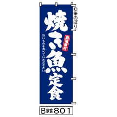 【お得な2枚セット-新品-送料無料】【キャンセル不可-12営業日で発送-ポスト投函】2枚組【焼き魚定食】のぼり旗|紺に白の目立つ手書き筆文字[801]