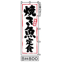 【お得な2枚セット-新品-送料無料】【キャンセル不可-12営業日で発送-ポスト投函】2枚組【焼き魚定食】のぼり旗|白に黒の目立つ手書き筆文字[800]