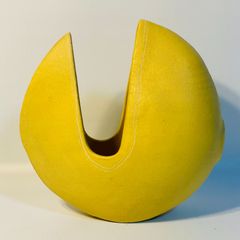 D-壁 昭和レトロ 陶器製 水盤 半月型 花器 茶道 華道 花瓶 フラワーベース
