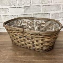 B-壁 竹かご 花籠 寄せ植え バスケット ビニール内張り付き 楕円形
