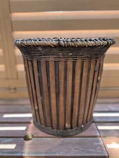 4F 天然素材 手編みラタンバスケット 籠 炭取り 花器 古道具 消臭炭 レトロ