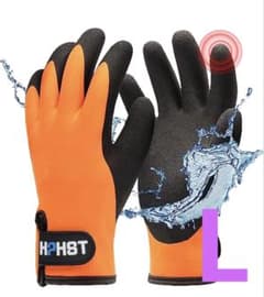 HPHST 防水 作業手袋 冬用 オレンジ 防寒 タッチスクリーン L