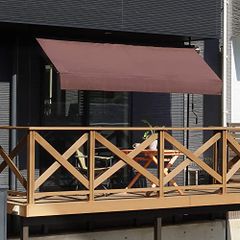 リビングアウト(Living Out) 物干し竿付きオーニング 日よけ アーム伸縮タイプ 幅2m ブラウン 工事不要 撥水加工 角度高さ調整 UVカット★m