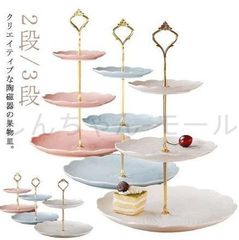 新しい未使用 ヨーロッパ式 ケーキスタンド ディスプレイ ケーキトレー 陶磁器 セラミック 2/3段重ねの果物皿 ケーキ棚 デザート台 家庭用