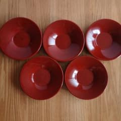 赤茶木製茶托 5枚セット 金色装飾 職人漆工芸
