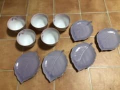 翠泉 万葉草花茶菓揃 湯呑と葉っぱのお皿各5枚セット