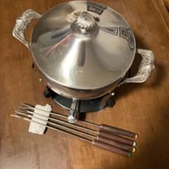アルコール式 ステンレス スチール製 フォンデュ鍋 &フォーク4本セット