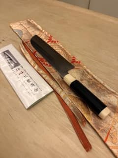 複合ステンレス本鍛造 薄刃包丁 研ぎ済 ○○別作 判読不能 赤口輪 良いお品 180mm