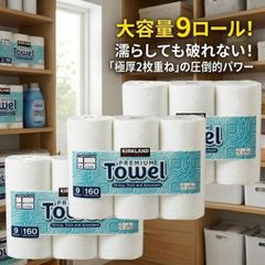 圧倒的吸水力! コストコ カークランド ペーパータオル 9ロール キッチンペーパー 160シート 2枚重ね 丈夫 厚手 掃除 油切り 日用品 備蓄 業務用 まとめ買い 大容量 買い回り ポイント消化 送料無料 爆買い ストック 国産 日本製 破れにくい