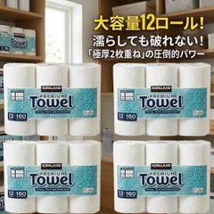 圧倒的吸水力! コストコ カークランド ペーパータオル 12ロール キッチンペーパー 160シート 2枚重ね 丈夫 厚手 掃除 油切り 日用品 備蓄 業務用 まとめ買い 大容量 買い回り ポイント消化 送料無料 爆買い ストック 国産 日本製 破れにくい