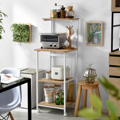 [山善] レンジラック (幅48×奥行41×高さ141cm) スライド棚 2口コンセント キャスター付き 組立品 アイボリー(木目調) GRW-48R(AIV/SWH)KK
