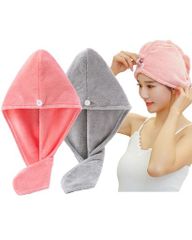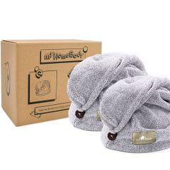 myHomeBodyヘアラップタオル、ラグジュアリー縮れ防止速乾ヘアドライターバン、ウルトラソフト吸水速乾性チャコールココナッツシェルボタン付き–2個