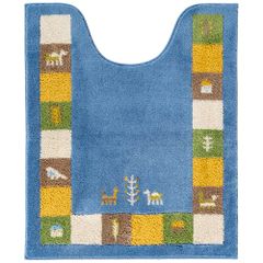 新品 オカ(OKA) シエラ トイレマット ロング 約75cm×63cm ブルー (日本製 ウィルトン織 ギャッベ エスニック すべり止め加工 洗える 抗菌 防臭 吸水加工)