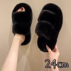 ふわもこ ルームシューズ 24 スリッパ 厚底 3cm エコファー 防寒 韓国