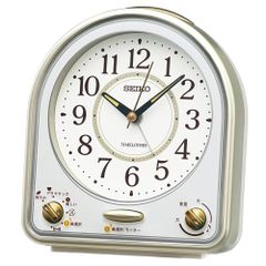 【送料無料】セイコークロック(Seiko Clock) 目覚まし時計 置き時計 アナログ 31曲 メロディ アラーム 薄金色パール・一部白パール 139×126×70mm QM750G b1b71261