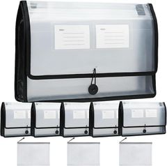 Sweet Plus ファイルケース A4 収納 ドキュメントケース プラスチック製 ゴム紐付き 名刺ポケット付 軽量 フォルダー 書類整理 プロジェクトファイル オフィス 学校 仕事用 (クリア6枚・ポーチ3枚)