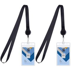 【在庫セール】2個入り 両面 社員証/名札ケース ビニール ネームホルダー ブラック 定期入れ パスケース リールストラップ付き ソフト クリア 縦型 首掛け IDカードホルダー Wisdompro