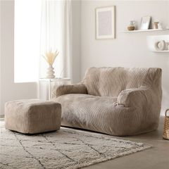 圧縮ウレタンクッションソファ 2人掛け+オットマン セット コーデュロイ ベージュ