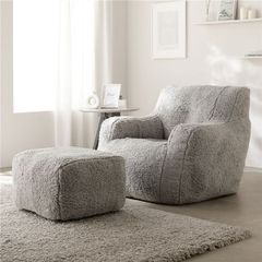 圧縮ウレタンクッションソファ 1人掛け+オットマン セット もこもこファー グレー