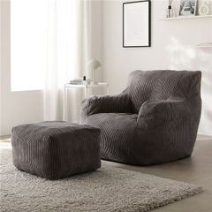 圧縮ウレタンクッションソファ 1人掛け+オットマン セット コーデュロイ チャコールグレー