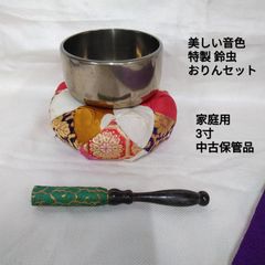 仏具【 おりん鈴虫】 音の職人がたたいて作るおりんで、美しい音色が特製です。3寸家庭向き中古3点セットR537