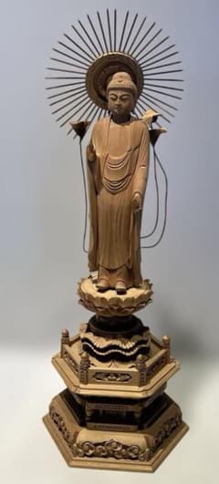 19 東立弥陀 総桧 六角台座付 吹レンゲ 仏像 仏具 コレクション 希少