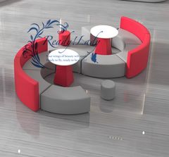応接ソファーセット 肘なし 待合ソファーセット リビングソファ パブリックソファー ロビーソファ 北欧 モダン (セット8-レッド)