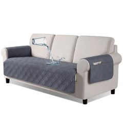 TAOCOCO ソファカバー 防水撥水 背もたれなし ソファーシート 犬猫対策 毛髪不粘着 滑り止め 1人2人3人掛け 肘付き 替えソファカバー 防塵 汚れ防止 傷防止 爪とぎ防止 マルチカバー 撥水加工 丸洗い可能 (ダークグレー色, 3人掛けPlus)
