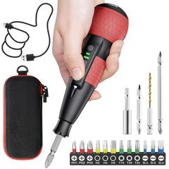 D★電動ドライバー 小型 【業界初・鬼トルク・軸ブレなし】 電動6N.m 手動15N.m 強力 16点ビット付き 収納ケース付き USB-C充電式 高輝度LEDライト 軽量 DIY 操作簡単 女性/初心者対応 レッド