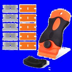 汚れ落とし 安全スクレーパー ポケットスクレーパー 掃除壁面の付着物のかき落とし ガラススクレーパー (プラスチックブレード5個、ステンレスブレード5個、ブレードカバー付き) スクレーパー 替刃付10個 シール剥がし ステッカー/シール/ラベル/接着剤剥がし