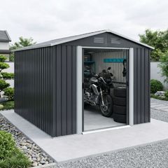 【2000円クーポン配布中】大型 物置 屋外 スチール製 幅236×奥行303×高さ190cm 戸外収納庫 引き戸タイプ 大容量収納 換気口付き 防錆加工 ガーデニング用品収納 庭 ベランダ 倉庫 屋外収納庫 DIY 組立式 収納小屋 物置 / 屋外 / 倉庫