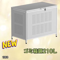 #1263 ゴミ箱 210L 屋外 家庭用 ステンレス製 カラス除け ゴミ荒らし防止 ゴミ蓋付き フック留め具付き 鍵取り付け可能 ガタつき防止 アジャスター付き ※一部地域離島別途配送料有