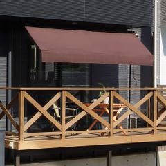 UPstore オーニングテント つっぱり式 日よけ 目隠し 巻き取り式 サンシェード 簡単設置 工事不要 UVカット UPF50+ 雨よけ 撥水加工 国内メーカー (横幅 3m タイプ, テント:モカブラウン/ポール:黒)
