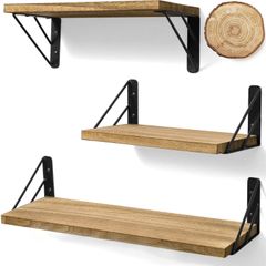 壁掛け棚 3個セット 壁 棚 ラック ウォールシェルフ おしゃれ 天然木製 ウォールラック 飾り棚 幅42cm ランドリールーム/キッチン/洗面所/オフィス/寝室 取付説明書付き ライトブラウン
