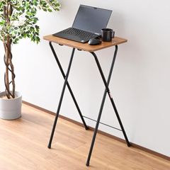 RYST-5040H(90)(ABR/BK) アンティークブラウン/ブラック 完成品 幅50×奥行52×高さ90cm メラミン天板(傷・汚れ・水分・熱に強い) 机 ハイタイプ サイドテーブル 折りたたみ式 ミニ テーブル 山善(YAMAZEN)