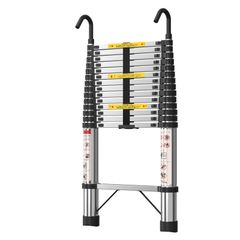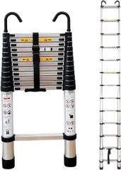 【ワンタッチロック、アルミ製】 ONE STEP 伸縮はしご 耐荷重150kg スライド式 折りたたみ 安全ロック コンパクト 多機能アルミはしご 持ち運びに便利 軽量 室内 屋外 両用 (【3.8m フック付】)wb