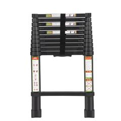 RIKADE 伸縮はしご 耐荷重150kg 軽量 持ち運びやすい 折り畳み 伸縮梯子 多機能アルミはしご 自動ロック スライド式 伸縮自在 梯子 室内室外両用 スライド式 フック付き (ブラック, 2.6m)so