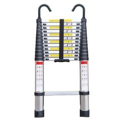 DayPlus 伸縮はしご 3.8M ロック スライド式 伸縮自在 梯子 スライド式 フック付き ステンレス製 フック付き 自動ロック 持ち運びやすい 折り畳み 伸縮梯子 折り畳み 軽量 耐荷重150kg スライド式脚立 室内室外両用so