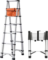RIKADE 伸縮脚立はしご 踏み台 軽量伸縮自在 折りたたみ 持ち運び便利 室内屋外両用 アルミはしご ?自動・安全ロック付き 耐荷重150 kg (ブラック, 1.4+1.4m)KK