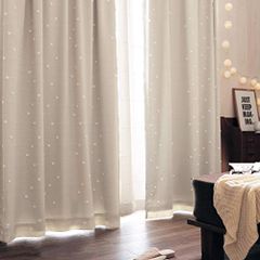 新品 [ベルメゾン] カーテン 遮光 遮熱 防音 洗える ぽんぽんデザイン ホワイトベージュ 約100×178(2枚)