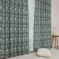 新品 【144サイズ】ウィリアム・モリス 国産防炎カーテン 2枚組【Brer Rabbit ブレアラビット】P263 (約130cm幅×約165cm丈) 3級遮光 遮熱 断熱 目隠し 人気 多機能