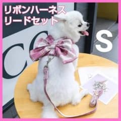 ハーネス リード セット 犬 リボン 紫 チェック お散歩 ペット かわいい