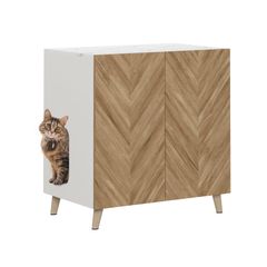 猫トイレ 隠すキャット レストルーム 猫トイレ収納 大型おしゃれ ペット家具 お手入れ簡単 猫砂飛散防止 ニオイ軽減 扉付き (魚骨木目パターン)