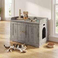 猫トイレ収納 キャビネット 木製 トイレカバー 大型タイプ 隠し収納 猫砂飛び散り対策 お手入れ簡単 室内用 猫家具 グレー