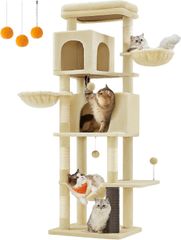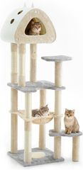 キャットタワー ハンモック 多頭飼い 人気 据え置き スリム設計 大きいハンモック ライトグレー ベッド 多頭飼い 高さ162cm