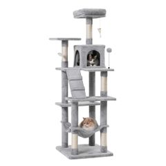Mwpo キャットタワー ハンモック 多頭飼い 人気 据え置き スリム設計 大きいハンモック ライトグレー ベッド 多頭飼い (高さ162cm) 130BCH